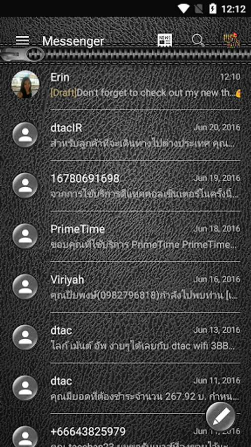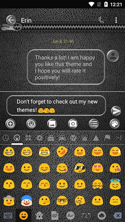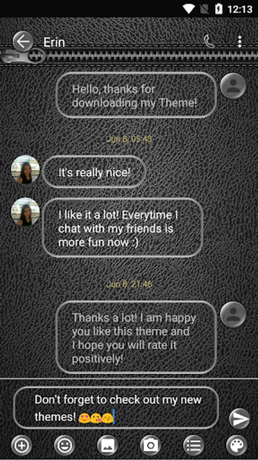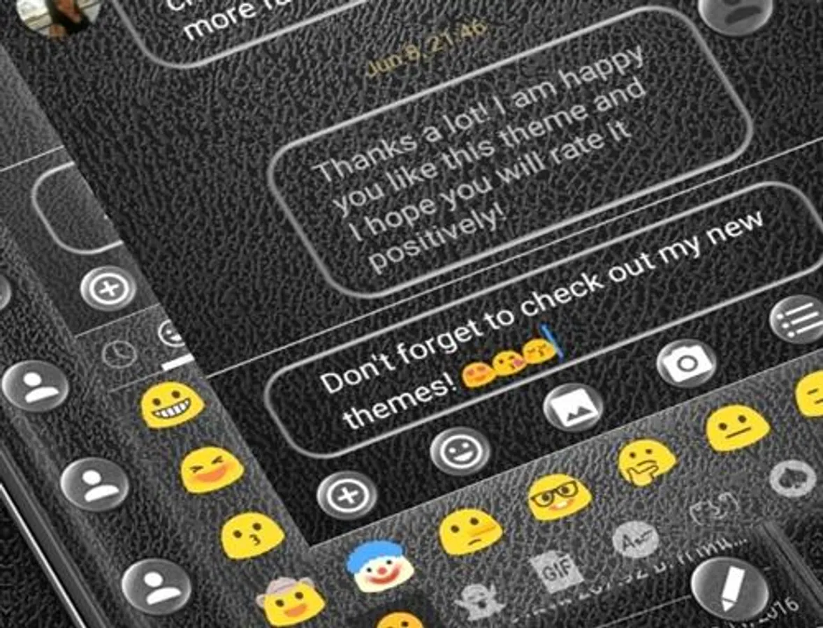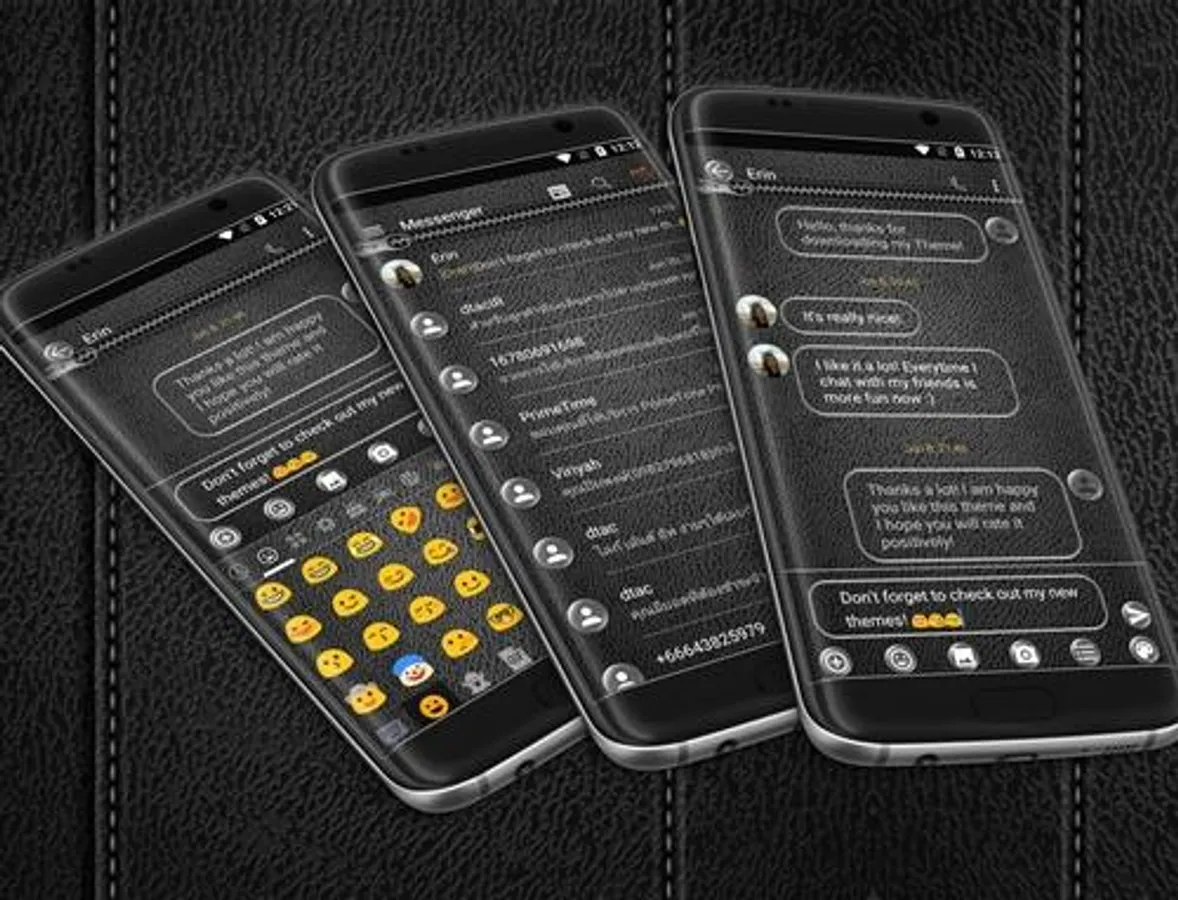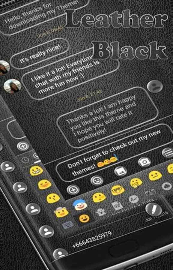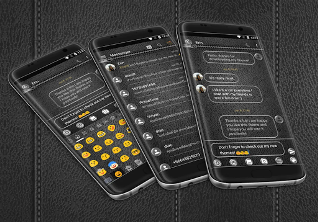 This is a theme with silver framed message box over a dark black leather background for SMS+MMS Messages application: please install SMS Messages main program to use this theme.