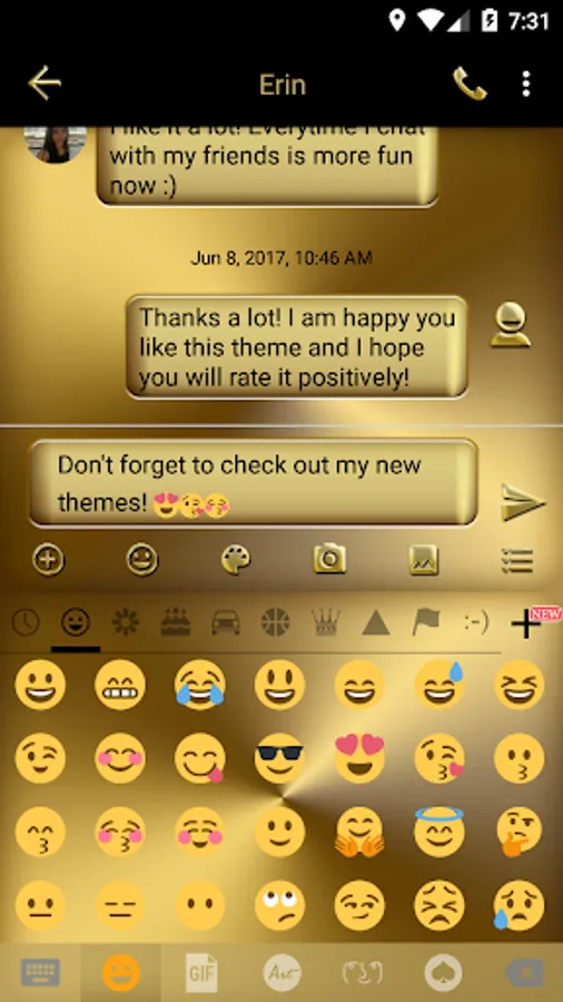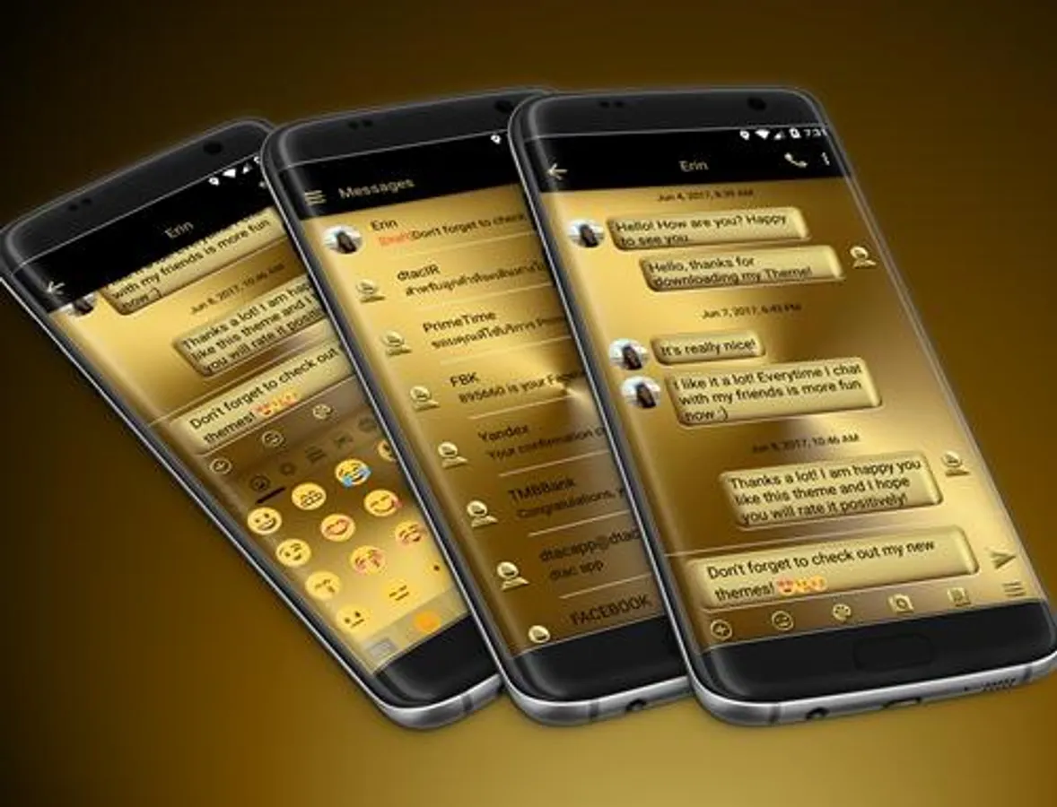 Game of Gold, for those addicted to the precious metal, is a theme with rich gold message box over a metal solid gold background for SMS Messages application: please install SMS+MMS Messages main program to use this theme.