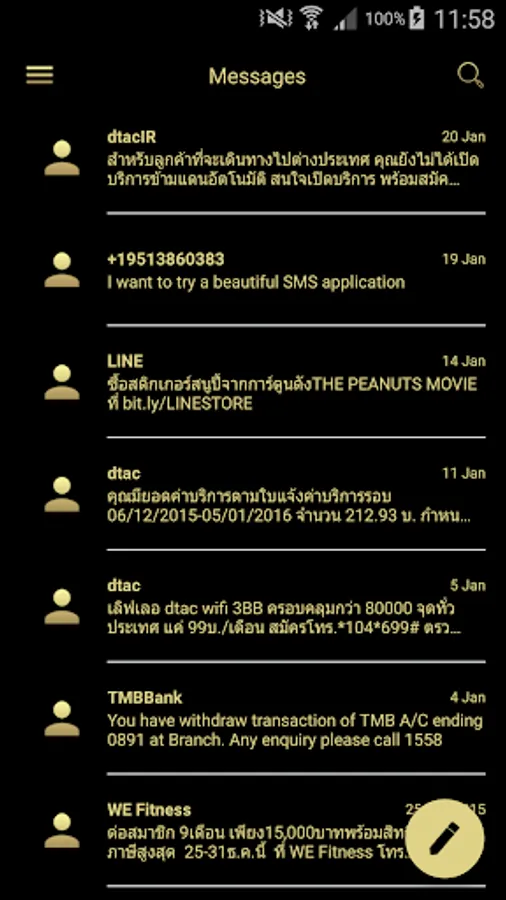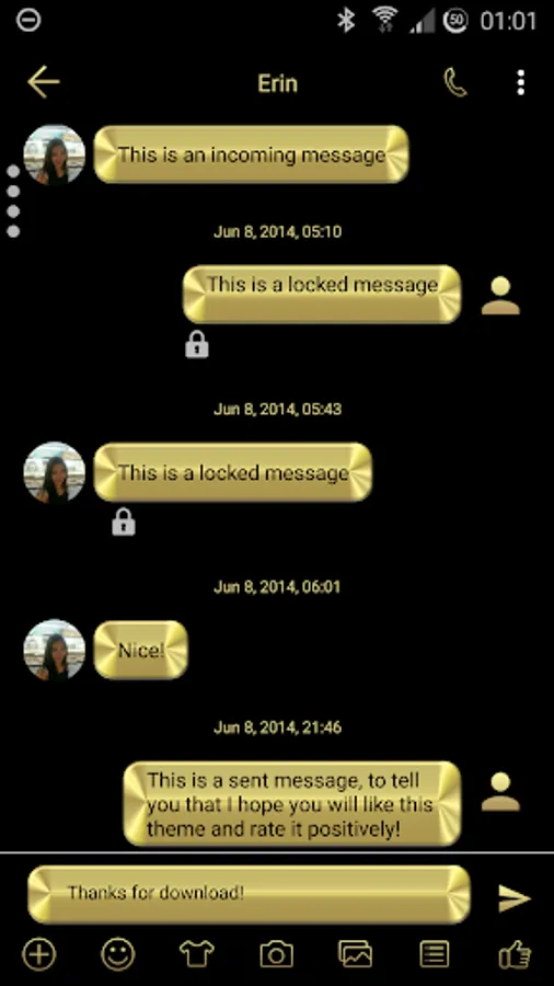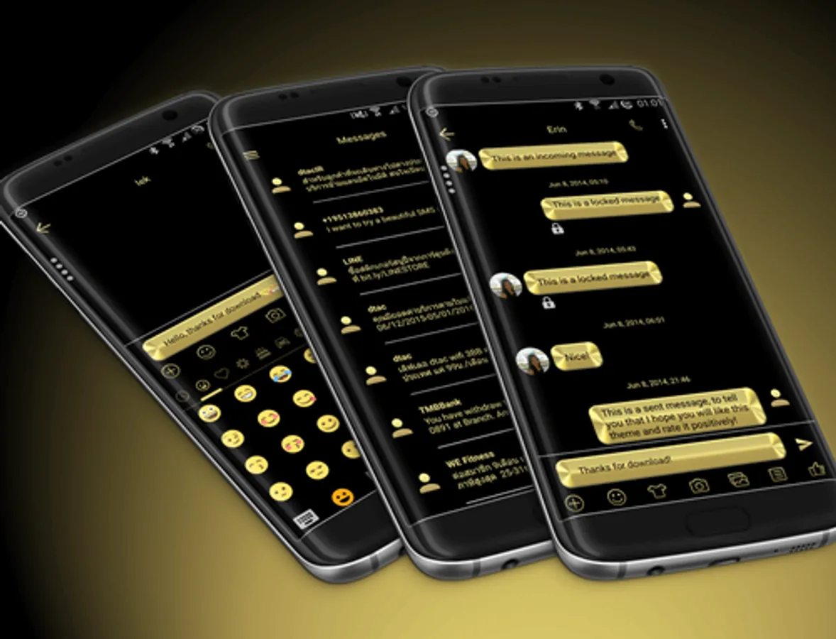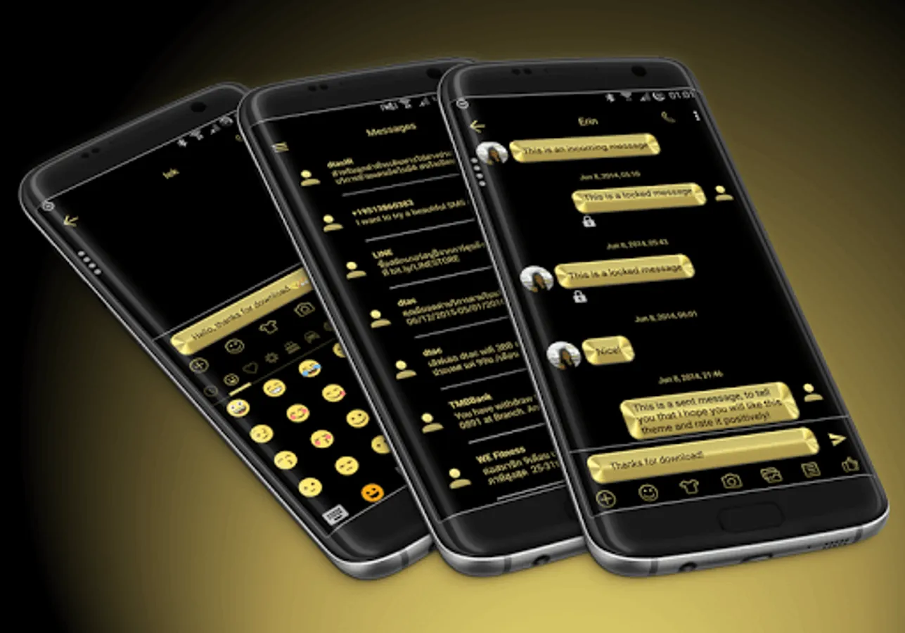 Metallic Gold theme with black background and shining rich gold metal buttons for SMS Messages application: please install SMS Messages main program to use this theme.