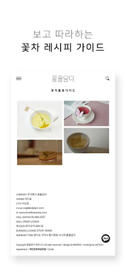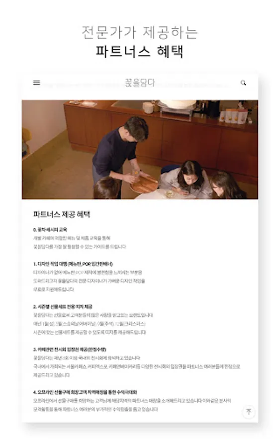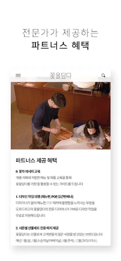 - Flower tea specialists of Blossom Damda are dedicated to partner members and support continuous consultation on flower tea use, cafe operation, menu management, etc.