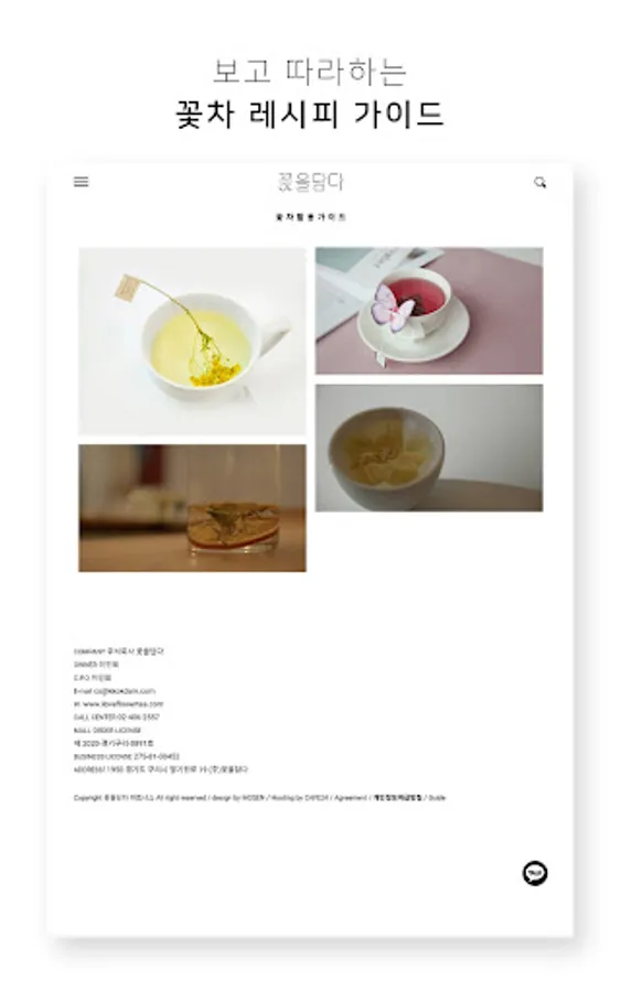 - In order to provide high-quality beverages, we provide flower tea manufacturing recipes with videos and images that can be viewed anytime, anywhere.