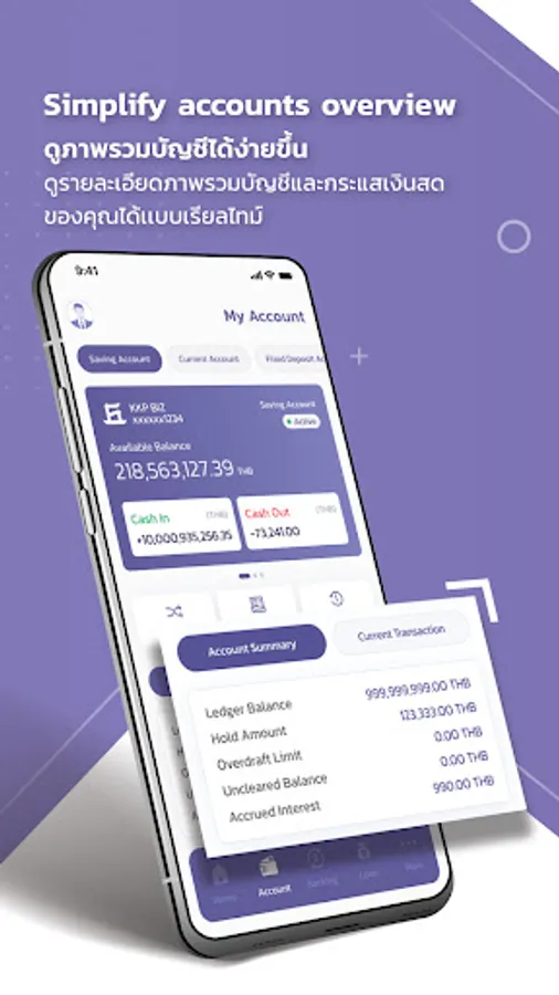 • Simplify account overview, See your account details and cash flow in real time