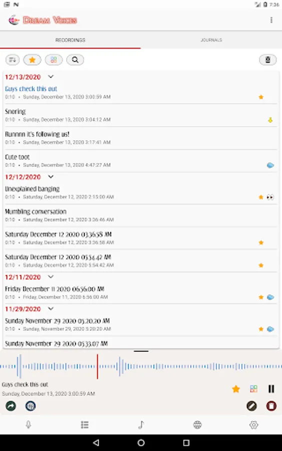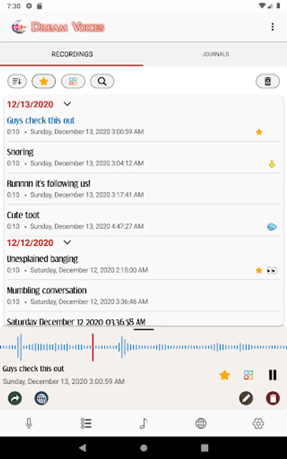 • Quickly navigate to sleep recordings from the night of your dream, so you can hear your sleep talking associated to the dream