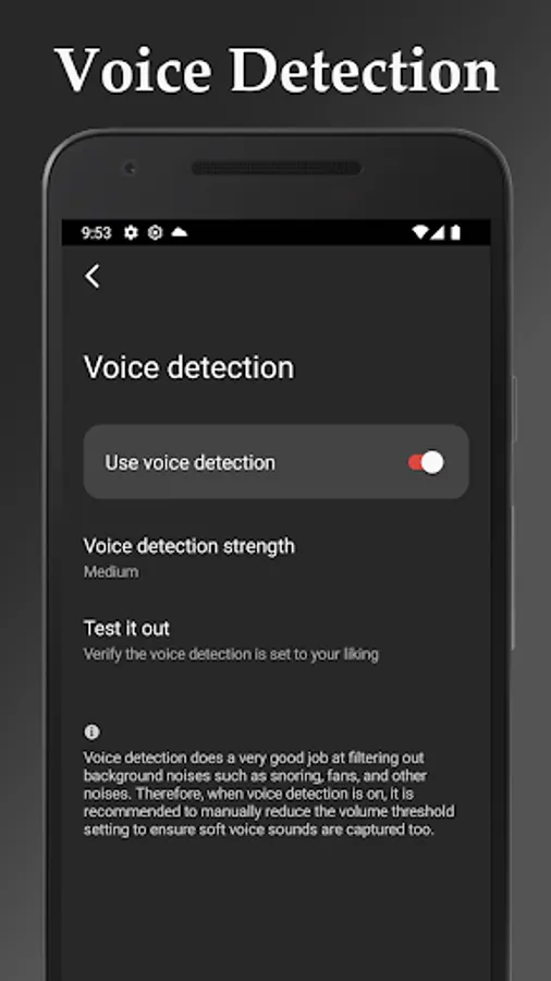 Are you someone that snores? No problem! Turn on Voice Detection and the sleep recorder will only capture voices, not snores or other background noise.