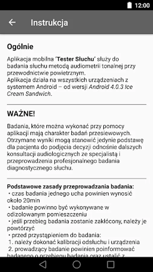 The study, which can be done using the application are of screening. The results can only be the basis for the patient to make decisions about further consultation with a specialist audiology and professional conduct diagnostic tests hearing.