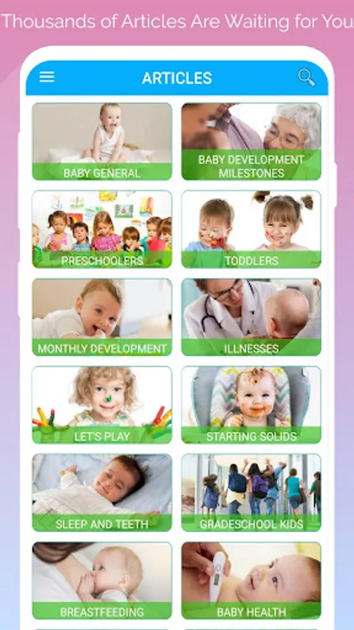 - You can learn more about baby care and nurture with the help of thousands of articles in different categories available in the application.