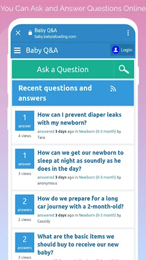 * You can also find the question and answer platform within the application by visiting www.baby.babyisloading.com link. You can log in with the same account information.