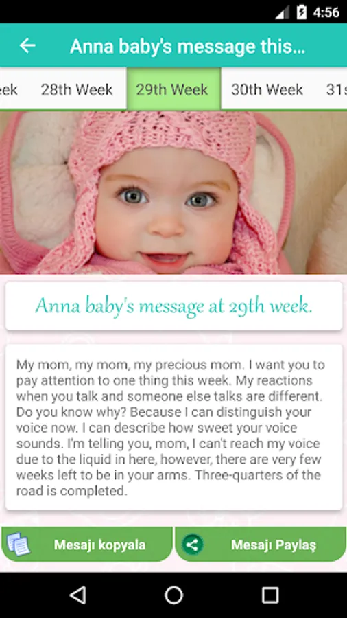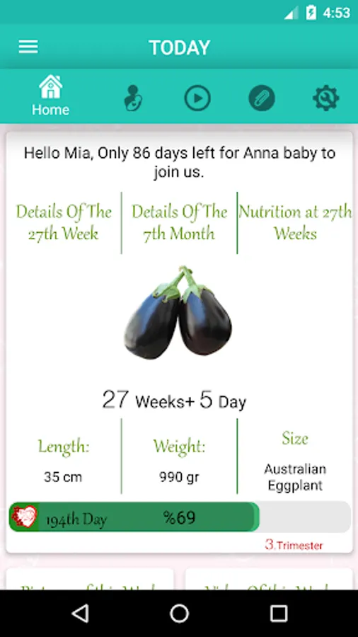 This application, which is the most advanced, comprehensive and useful pregnancy tracking application on Google Play, is designed to assist you during your pregnancy. You will have information every week as you have visited your physician. You will access to each detail about yourself and your baby. You can search the problem and issue you have and find the solution thanks to this application.