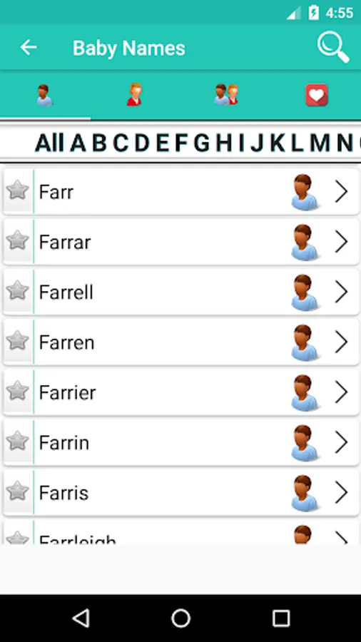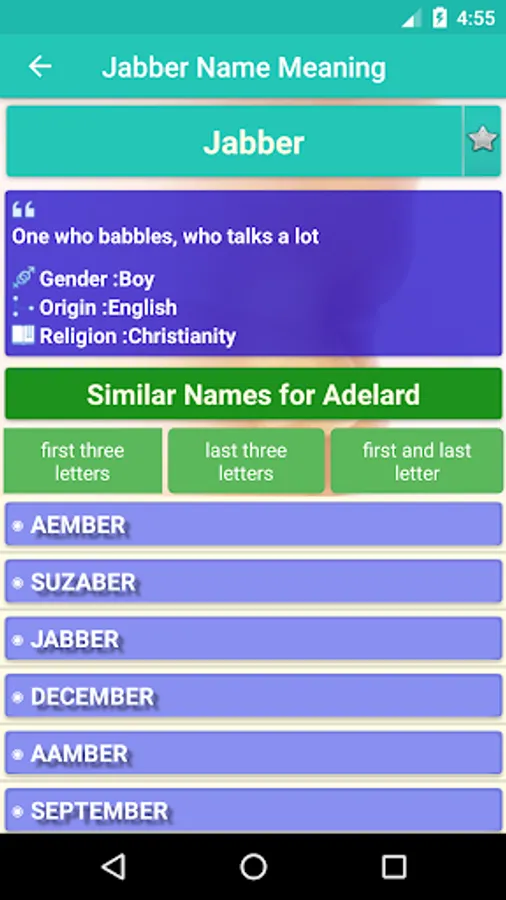 ● +15,000 names with their meanings and origins are located in the application. Also, other names compatible with specific names are listed as well.