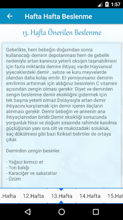 - You can learn nutritional tips for each week of your pregnancy and have a healthy pregnancy.