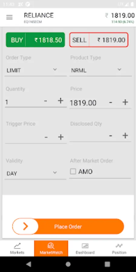 • Various Order types including Cover, Bracket & basket to take advantage of leverage.
