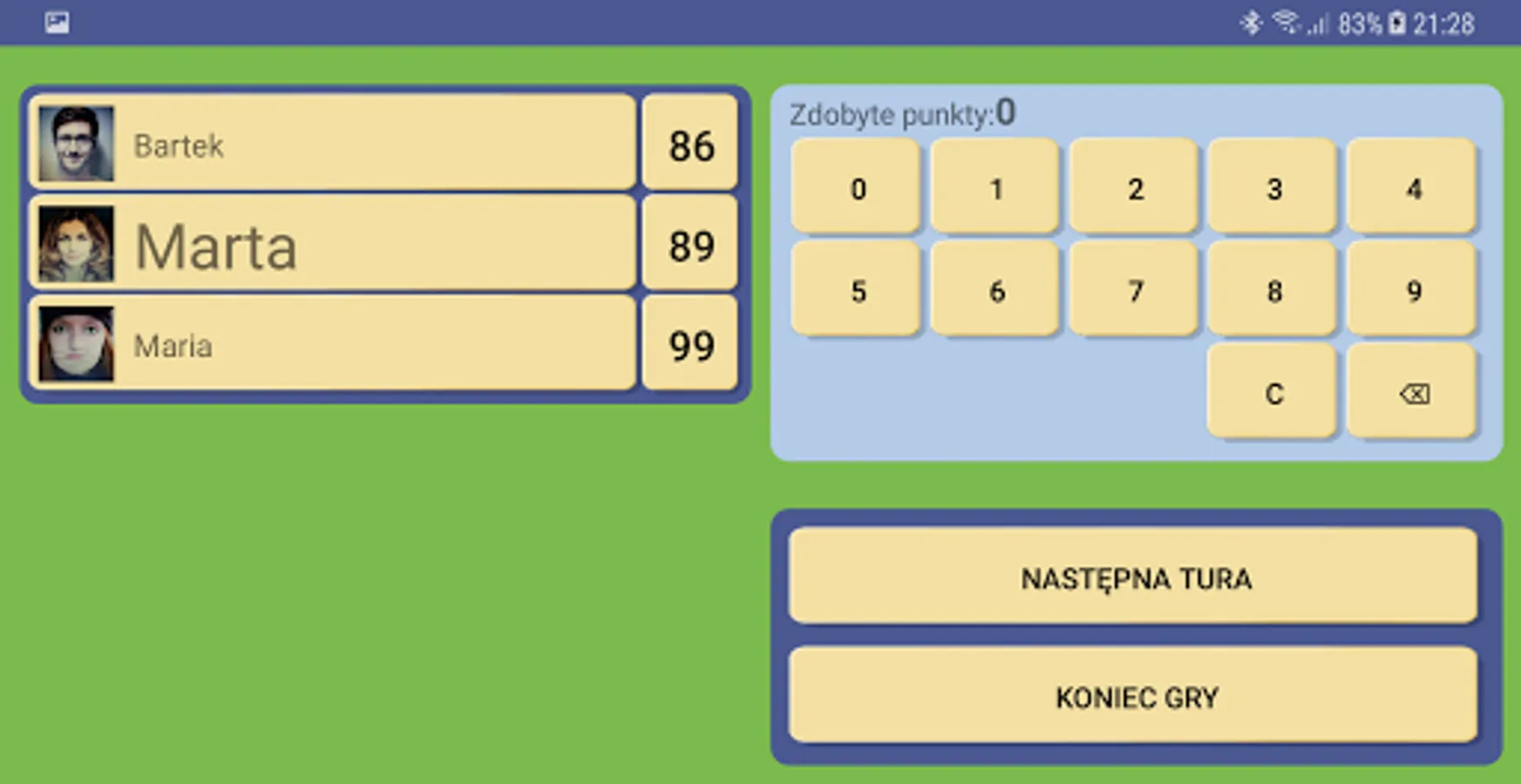 With Quedroid you can play any point based game, like Scrabble and make notes about collected points in application. Quedroid will take care of suming up the points!