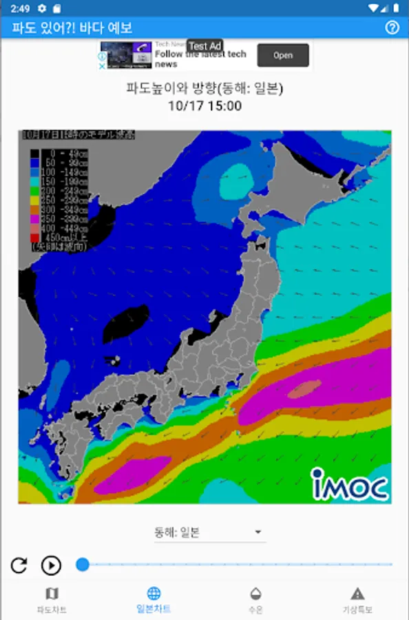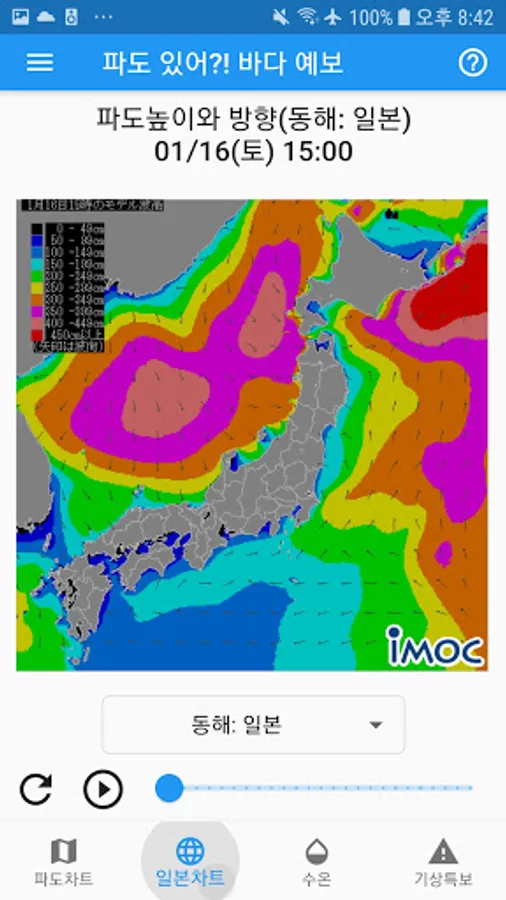 It is provided in the form of a weather map (image), so you can check all ocean wave forecasts nationwide.