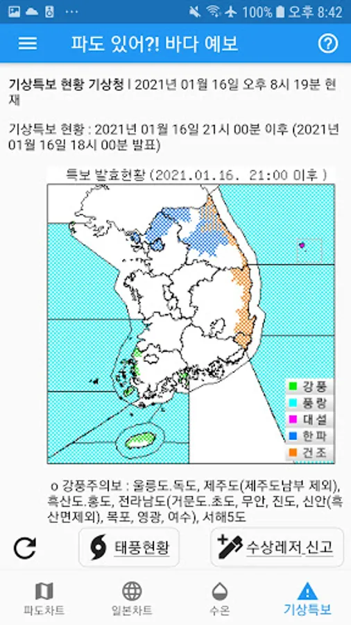 -Main contents: Wave height wind, wave direction and cycle, sea wind direction and strength, water temperature forecast, salinity forecast, ocean current forecast, weather warning, marine leisure report link, typhoon information link