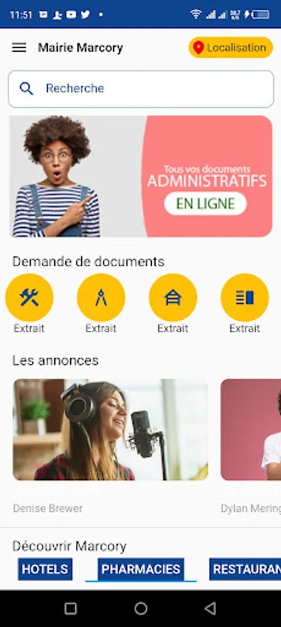 Stay connected to your community with the E-town hall application. This online platform allows you to consult the opening hours and contact details of your town hall, to participate in online consultations and surveys, to receive important notifications and updates, to find information on events and the activities of the city and finally to make requests online.