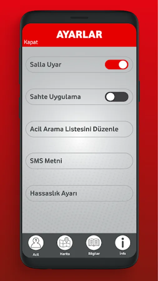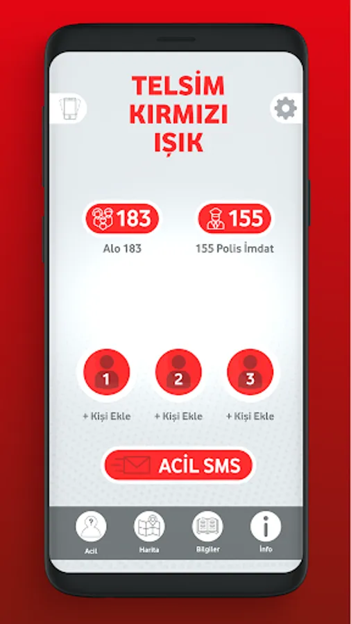 The Telsim Red Light Application enables women who are exposed to violence to access the police or their relatives by telephone and send an emergency SMS in a simple and simple process. In addition, Alo 183 and 155 Police Emergency numbers can be dialed with a single button. In the application, the nearest KAYAD addresses, organizations can be applied and information about the rights are also available.