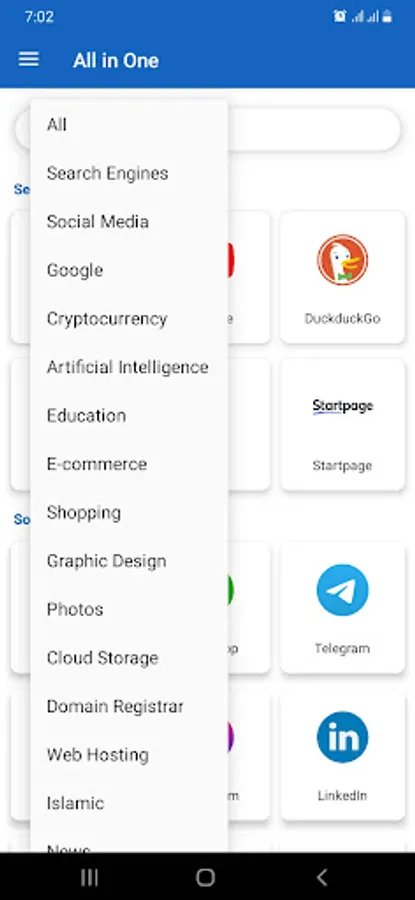 - Are you tired of going to the browser to search for or visit a website? With the All-in-One app, you can access multiple search engines and your favourite websites.