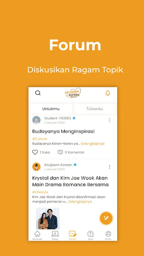 Start discussions with fellow users on the Kkuljaem Korean Forum. Upload and read articles about Education, Culture and Lifestyle in South Korea, like and leave comments to interact with other users.