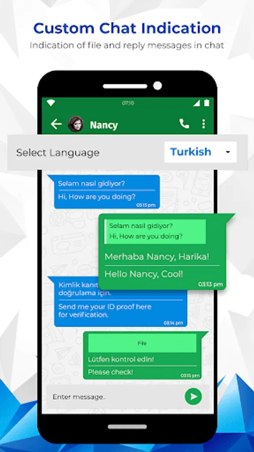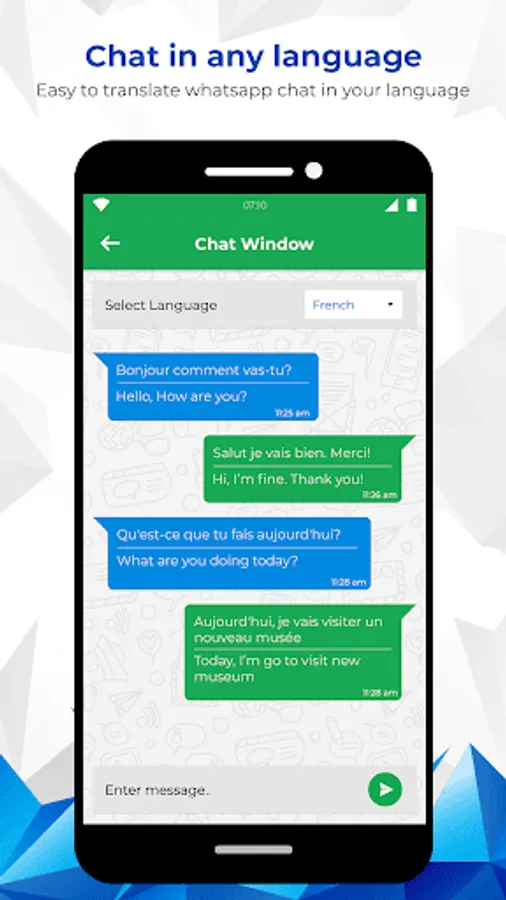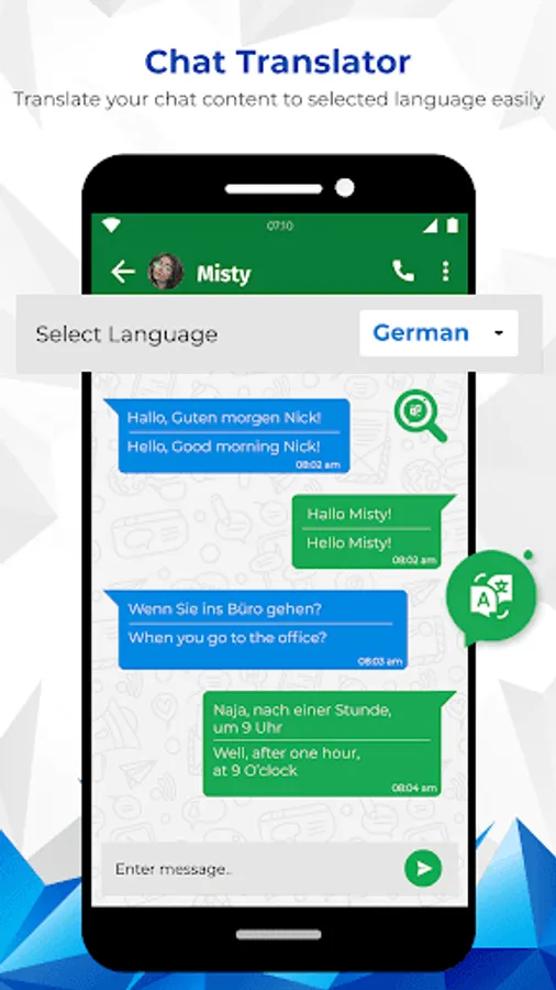 Download the Instant Conversation Language Translator for WA app and make your chat easy to understand with chat message translator.