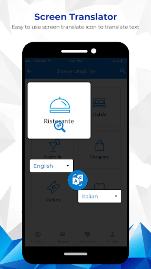 Chat translator will help you to translate text easily and make conversation with new friends in their language. This Chat Conversation Translator app will make you feel comfortable while chatting with other. This app is Instant Language Translator for chat conversation.