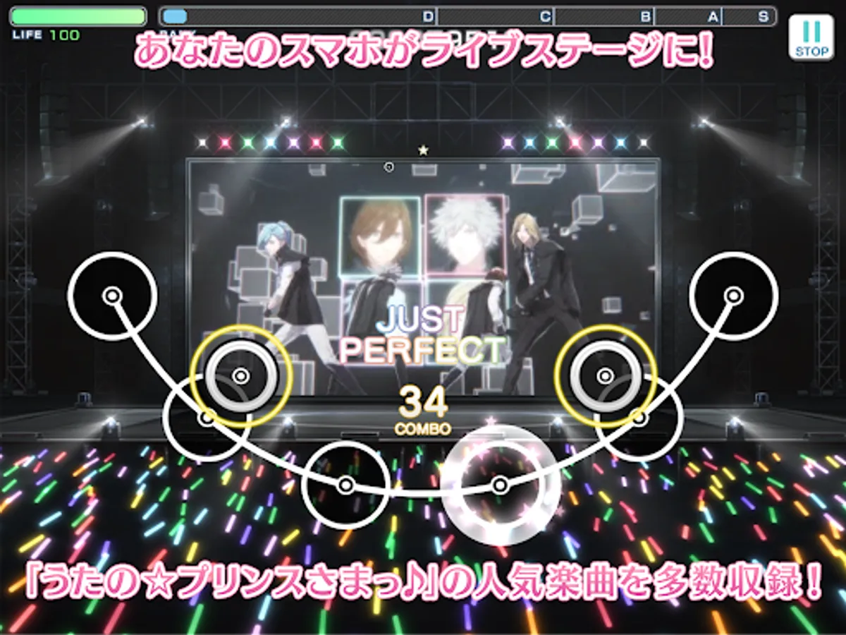 Play popular songs from “Uta no Prince-sama♪” in an easy-to-use rhythm action game!