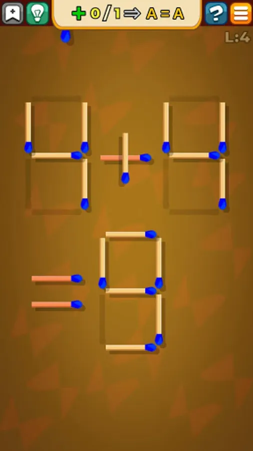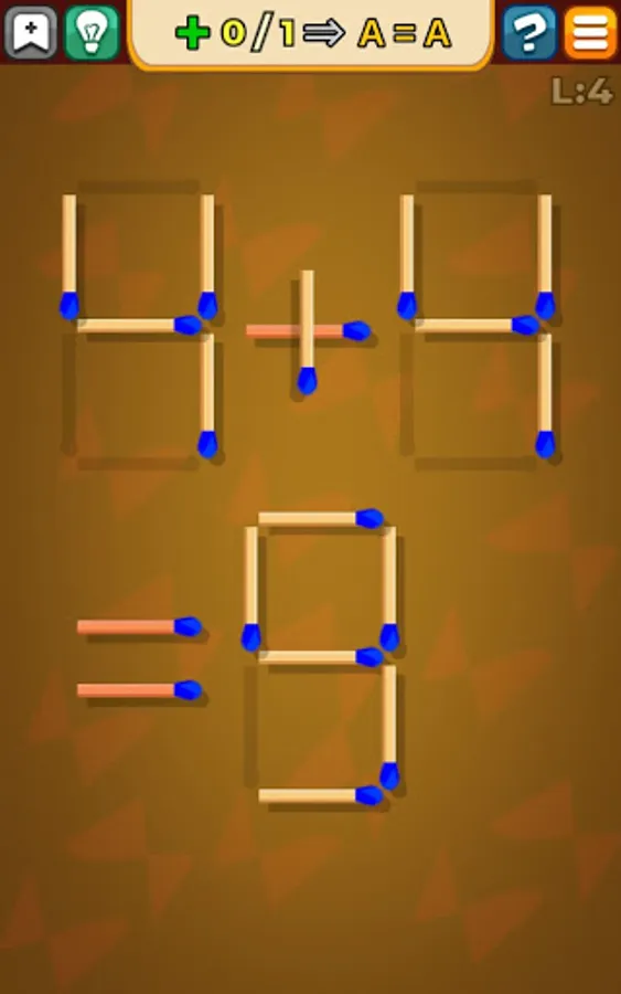 Solve matchstick puzzles by moving, adding and removing matches until you find the right solution.
