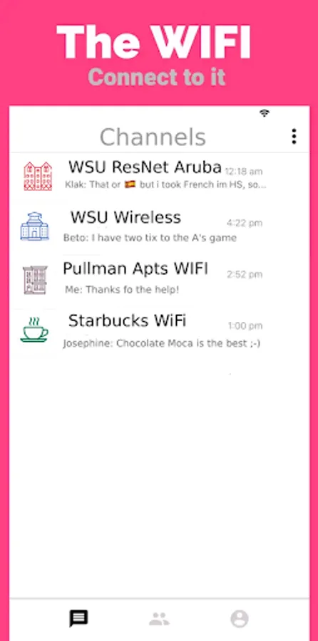Now instantly group chat with everyone at the coffee shop, campus, dorm, apartment complex or workplace. Just connect to the shared WiFi and open Klak.