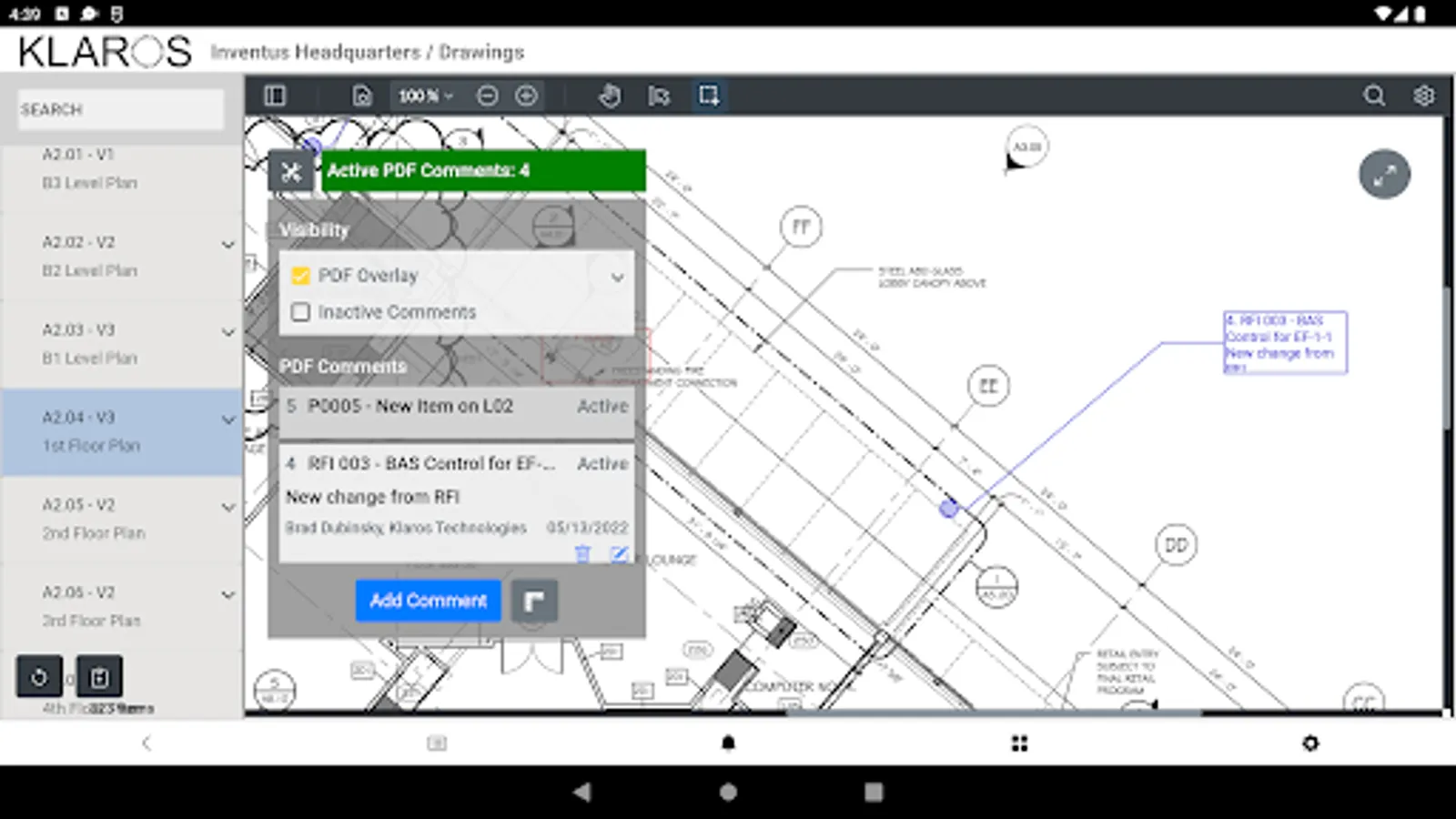 KLAROS is a leading provider of Data Management Solutions for the Construction Industry. Project teams can now access high quality data on their mobile devices and streamline document control. The collaborative information sharing process extends to the field with upgraded features to improve efficiency and save time: PDF Markup, RFI Linking, and Offline Support.