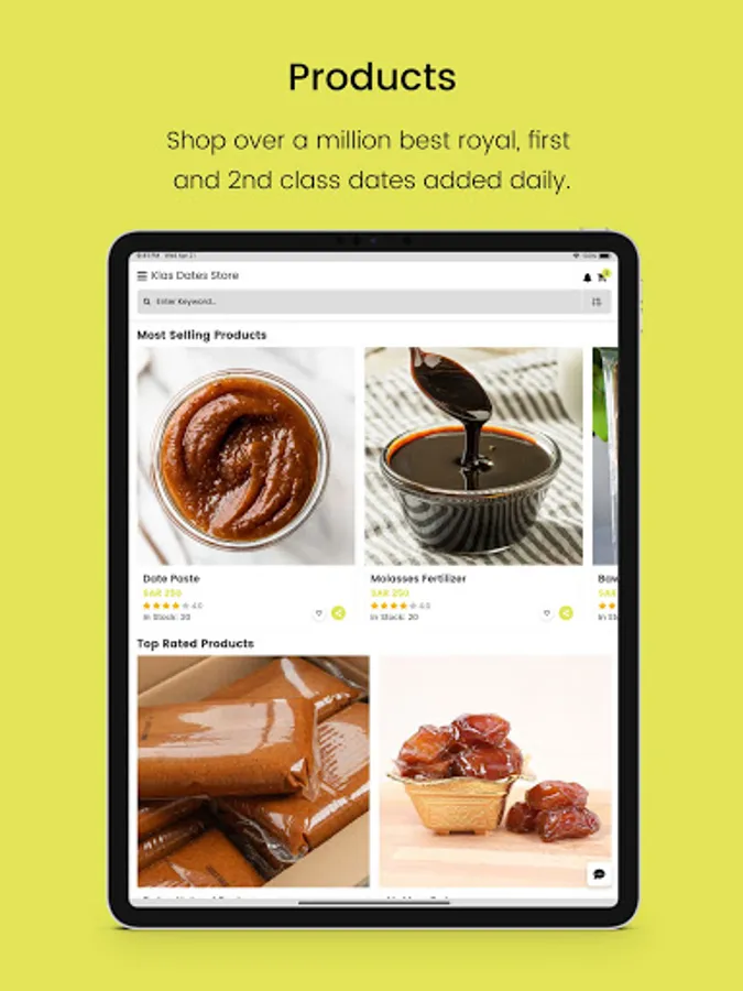 Specializing in providing the delicious Al-Ahsa salsa produced on our farms in the Al-Ahsa Oasis, and its derivatives such as molasses, date paste and dates stuffed with almonds.