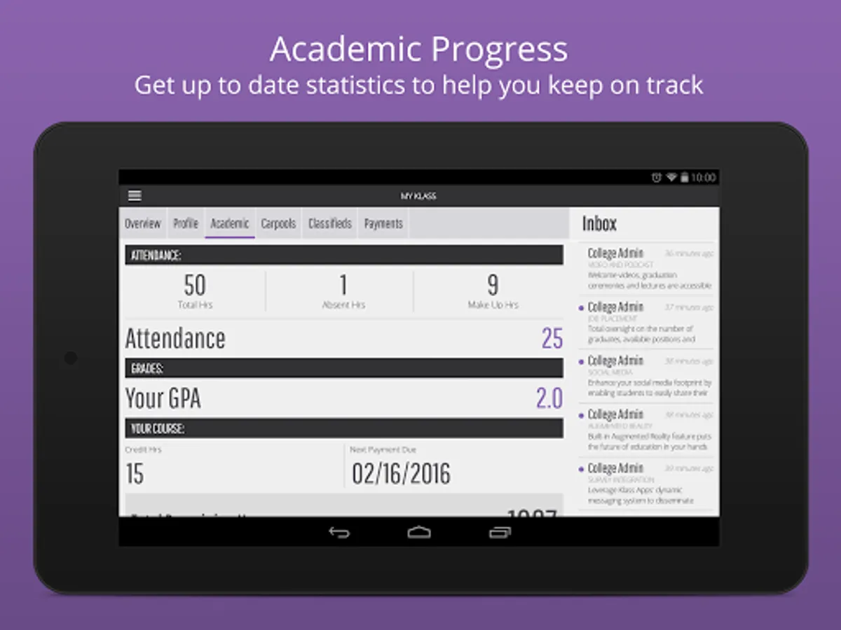 The Student App is powered by Klass App; in partnership with FAME Student Information Systems. You must be a Tri State Cosmetology Institute student to access this app.