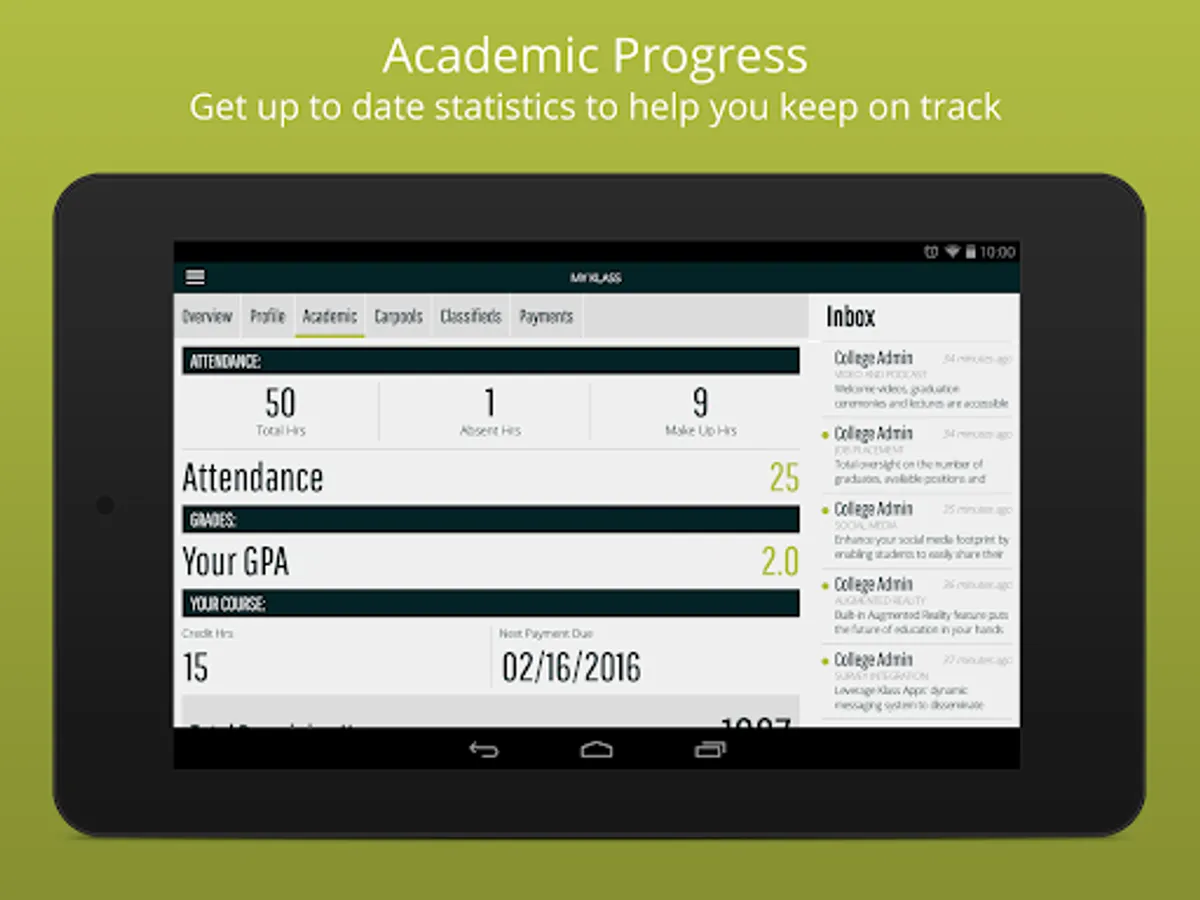 The Student App is powered by Klass App; in partnership with FAME Student Information Systems. You must be a VP Institute student to access this app.