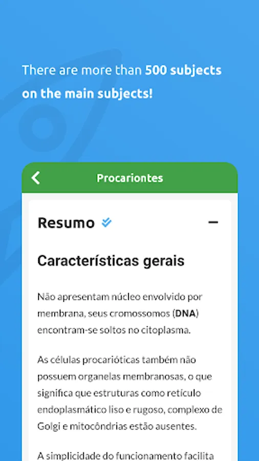 But that is not all! RevisApp has more than 600 contents in Natural Sciences (Chemistry, Physics and Biology) Human Sciences (History, Geography, Sociology, and Philosophy), and Math.