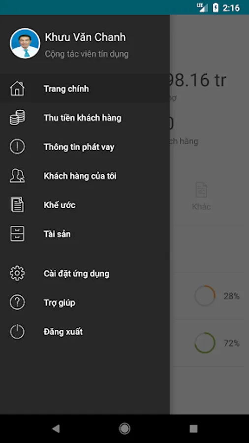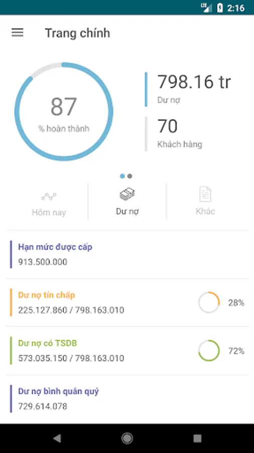 Applications help view business indicators, management of staff indenture credit / collaborators of the bank Kien Long