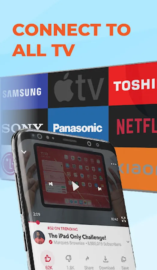 - Most smart TVs, LG, Samsung, Sony, TCL, Xiaomi, Hisense, etc.