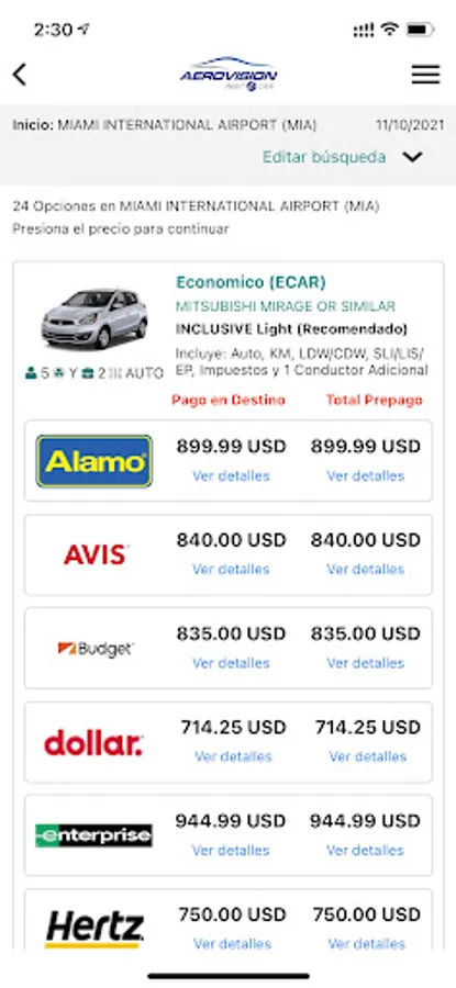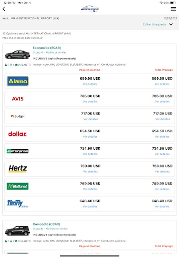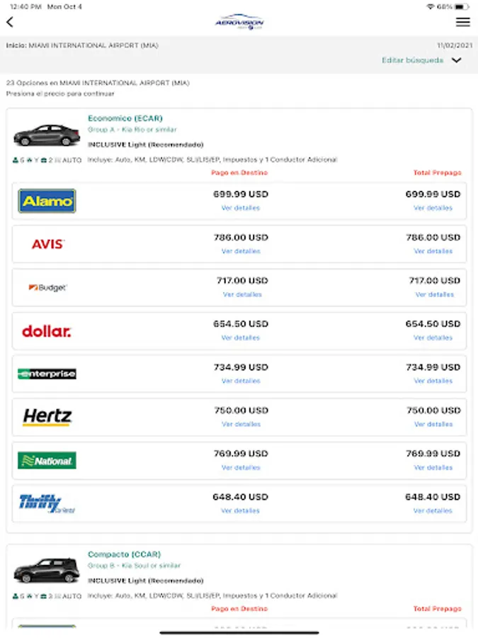 The comparative way as the search results are shown allows you to view the car options and available rates so that you can choose the option that best suits your needs.