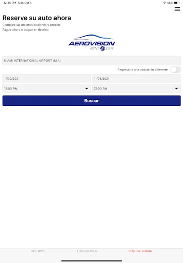 The Aerovision SAS - Rent a Car application (www.aerovisionrentacar.com.co) offers the option to quote and reserve a car rental with 8 of the main rental companies worldwide. With Aerovisionrentacar.com.co you can compare availability and rates simultaneously and in real time because it is directly connected to the reservation system of these companies.