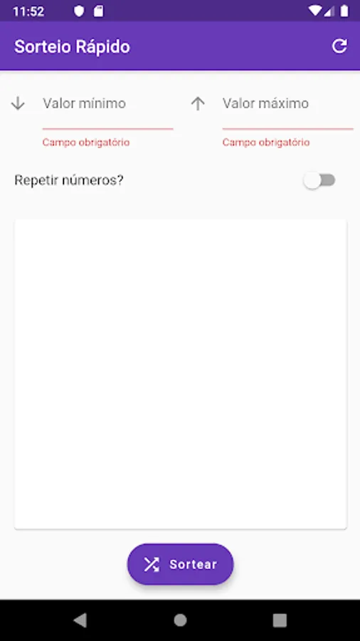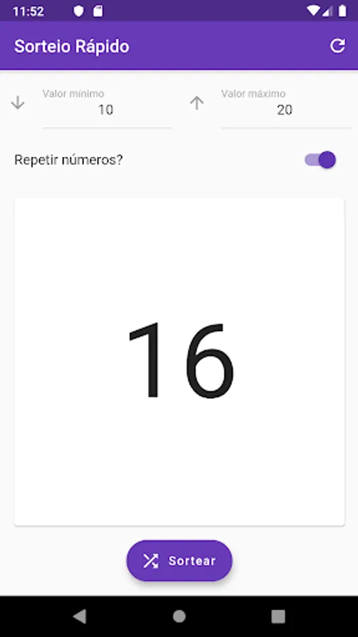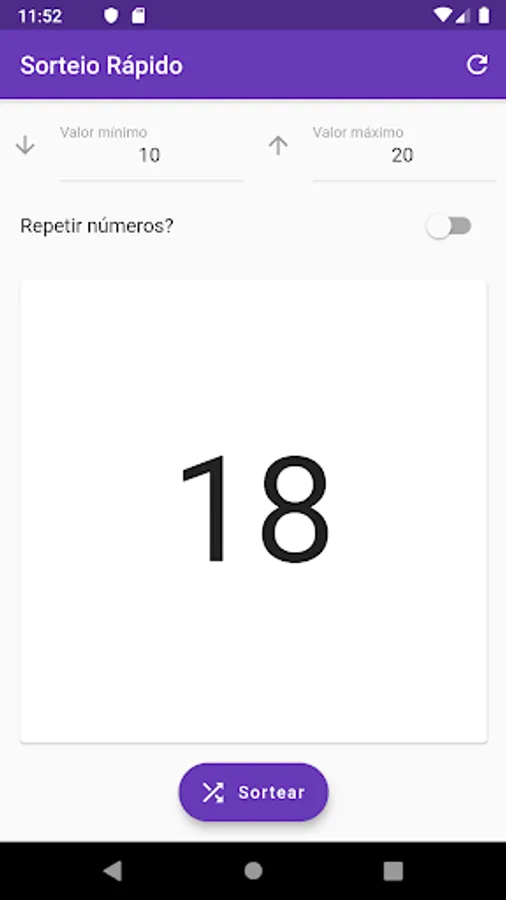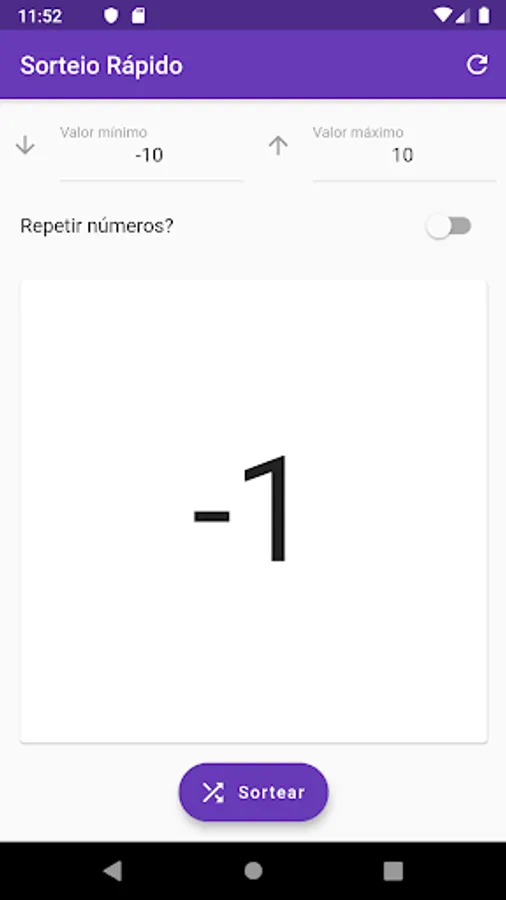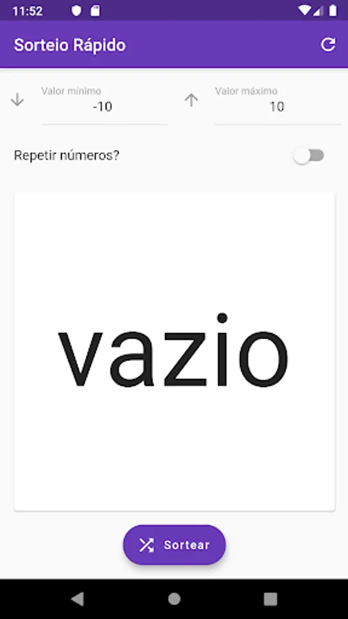 To use the application simply enter the lower and upper limits, ranging from -Infinite to Infinity, then immediately press the Sortear button.