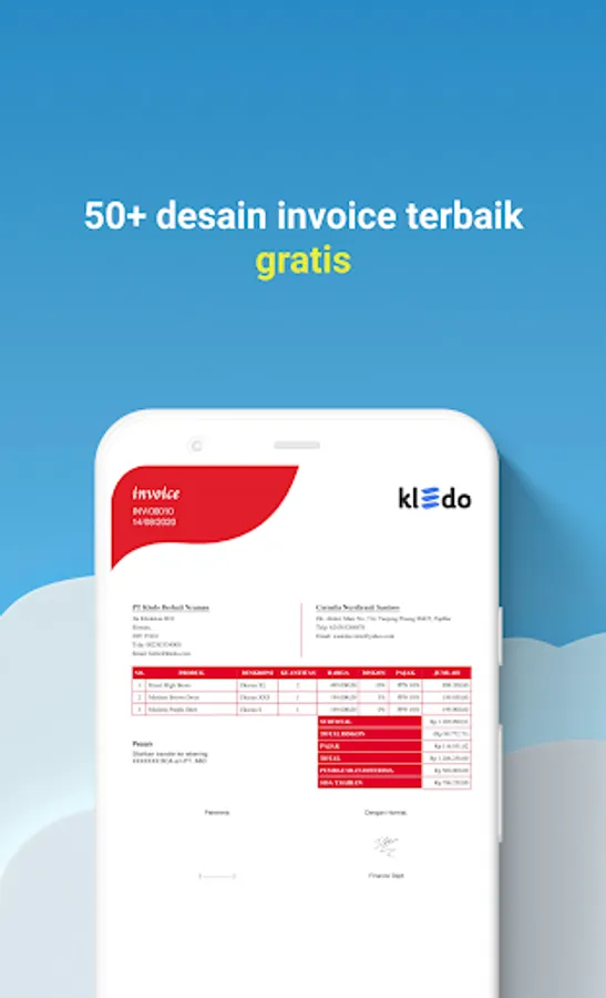 You can create invoices or cool invoices automatically when recording business transactions. By using Kledo, you can choose 50 attractive invoice designs for free. Invoices can be sent via WhatsApp or printed with a bluetooth printer as proof of customer purchase.
