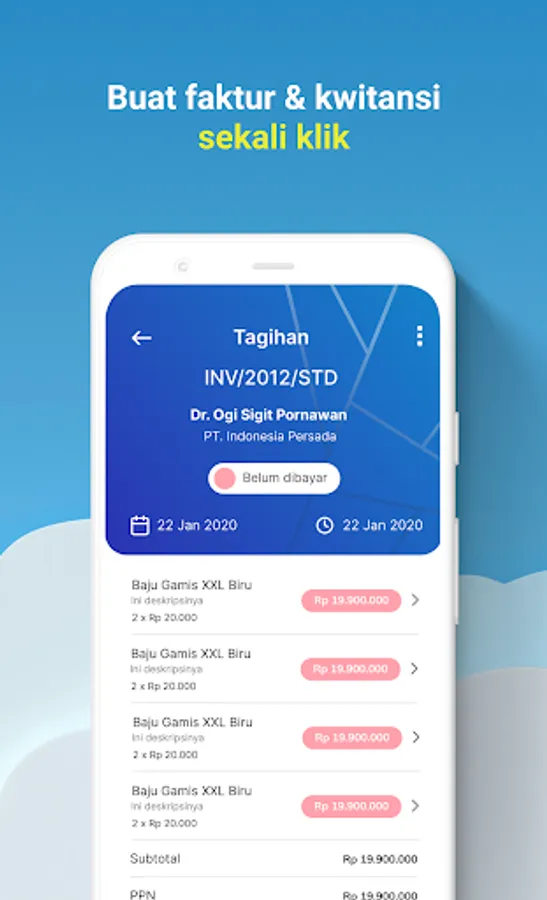 The data you add in Kledo will be stored securely in our system. So you can access it anytime and anywhere. Just download and log in to your account.
