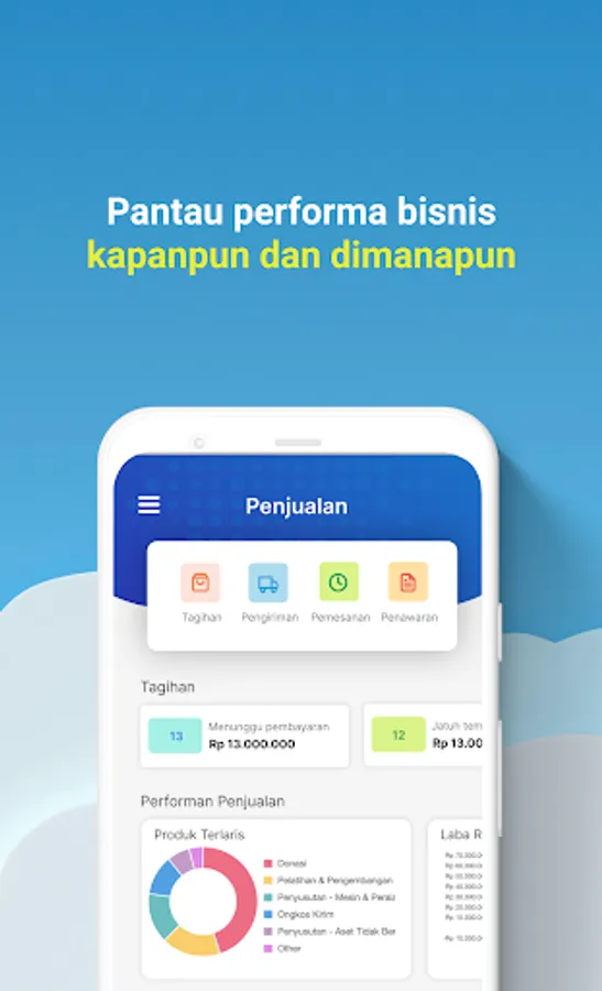 Download financial reports and monitor daily, weekly, monthly and even annual sales statistics automatically on Kledo. Guaranteed neat and easy to understand.