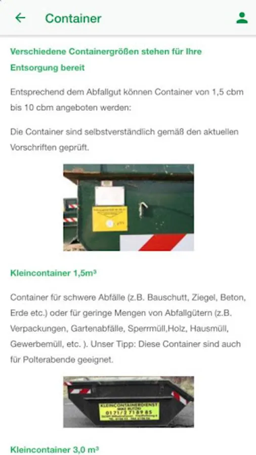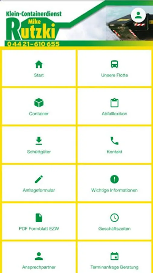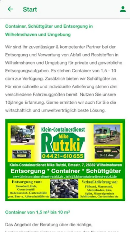 Welcome to the official Aoo of small-container service Rutzki! Here you will find everything about our company, and our container, our fleet and other important information. You need a container? Then take directly from the app via request form to contact us and book a consultation!