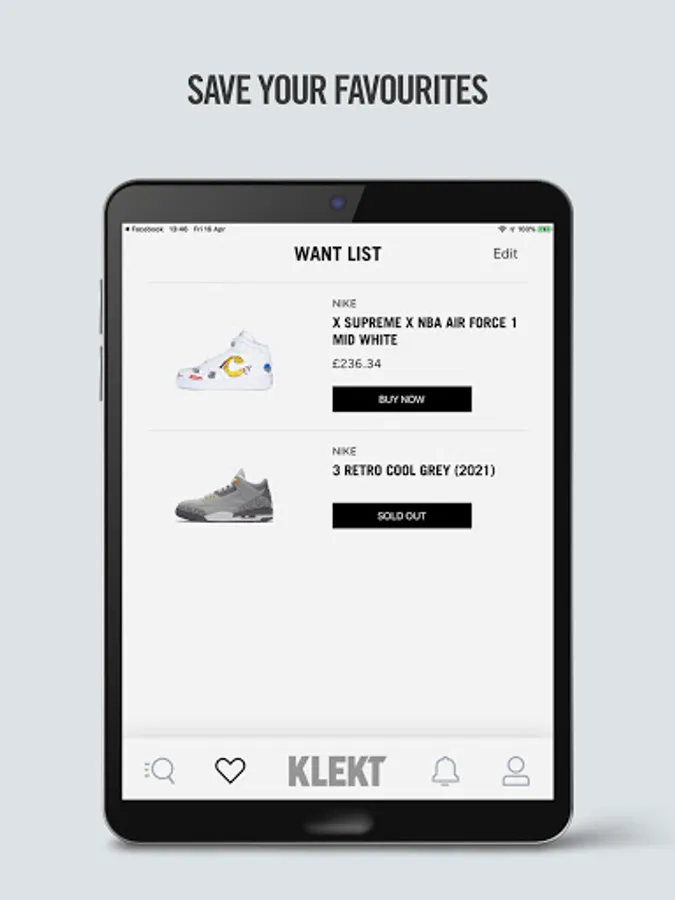 If you’ve seen a product you like just add it to your Want List. Every time there’s a price change or a restock of your size, you’ll be notified. Copping all your grails just got even easier.