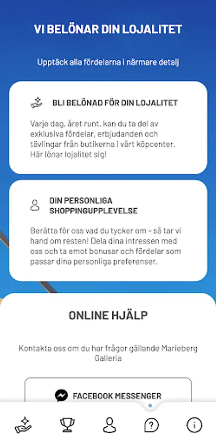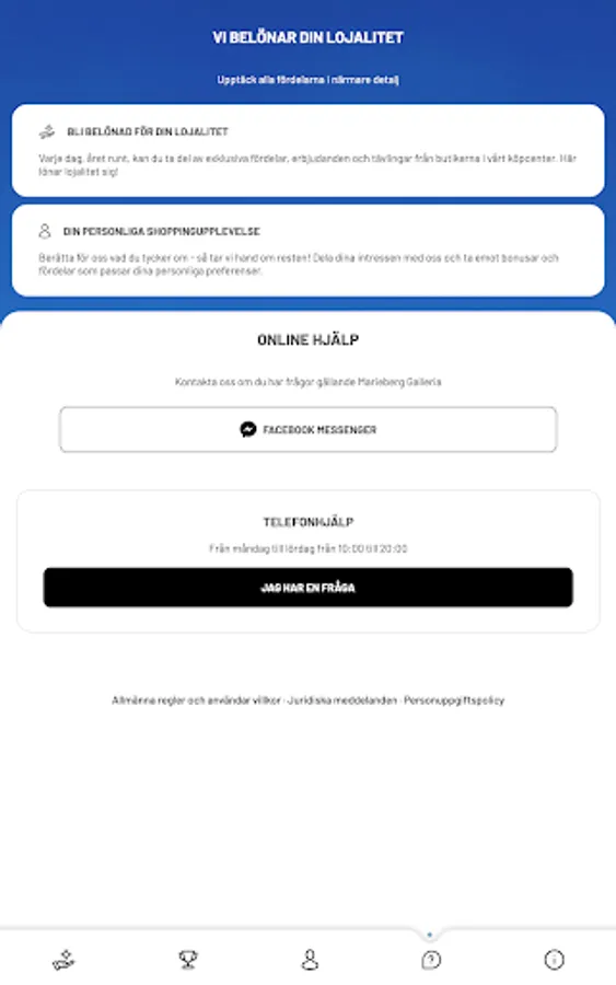Download our app, join our loyalty program and get unique benefits, offers, competitions and services from Marieberg Galleria and our partners.