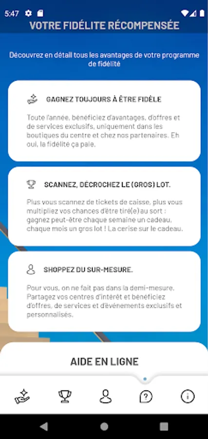 We have designed a tailor-made application to ensure a personalized experience. You will be able to identify your areas of interest and benefit from exclusive offers from your favorite brands.
