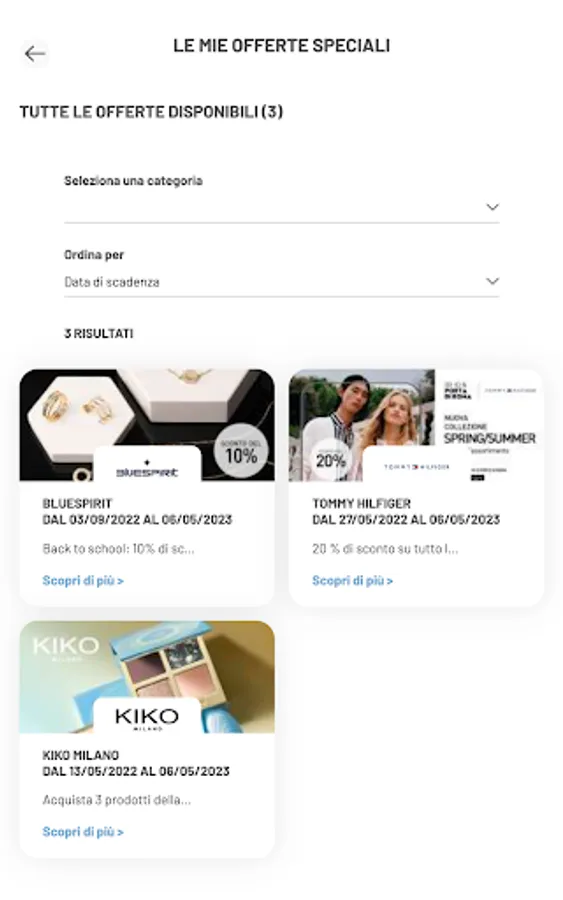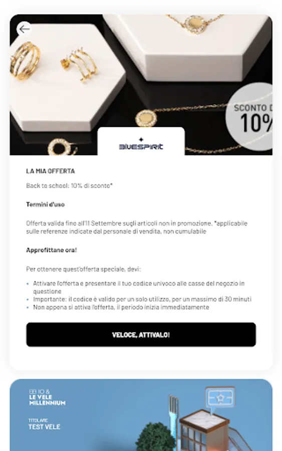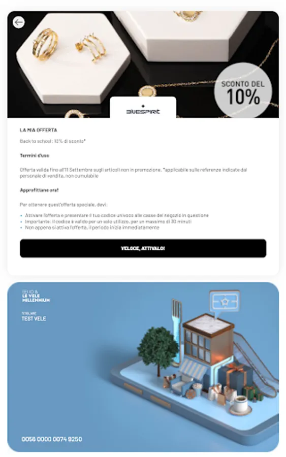 Download the app, get advantages, offers and exclusive services dedicated to you, from Le Vele or from our partners. You can set your interests and favorite brands to take advantage of exclusive and personalized offers.