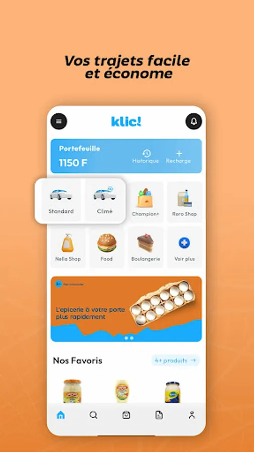 Have your supermarket and grocery shopping delivered in the blink of an eye with Klic supermarket and enjoy great savings on deliveries. Order online and have your groceries delivered right to your door within 30 minutes. Plus, your grocery deliveries are free! Klic delivers fresh food, alcohol and household items anywhere in Lomé. Download the app to see which stores are available in your area. Prefer to pick up? Order online and pick up at your local store after your personal assistant has filled your cart and awaits your arrival.