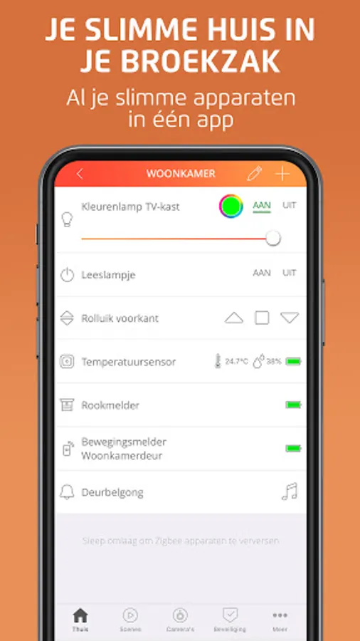 With KlikAanKlikUit you are always informed in an emergency. You will immediately receive a push notification as soon as your smoke detector goes off, the leak detector detects moisture or when a window or door is opened without being asked. This way you can act quickly in the event of an unwanted visit, fire or a leak.