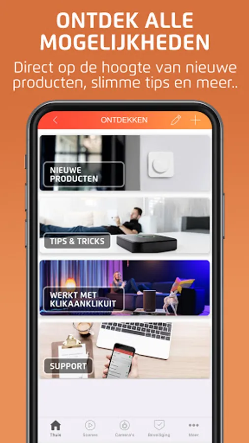From now on, control your smart home with your smartphone, even when you are not at home. Add all your smart KlikAanKlikUit products to the app and switch and automate your lighting, electric curtains, fans and other devices completely according to your wishes.