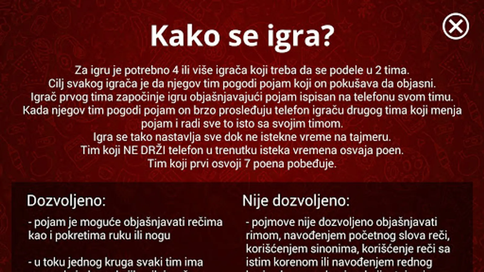 PAŽNJA: Molimo vas još jednom pročitajte uputstvo u samoj igrici, gde se nalazi i primer kako se igra. Uživajte u igrici!