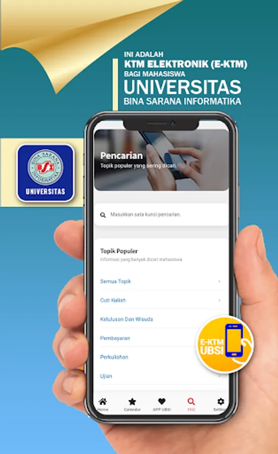 The Student Identity Card is an electronic identity card for all students registered as students at Bina Sarana Informatika University. This card will have several functions. Bina Sarana Informatika University students will later be able to use E-KTM as a card for campus academic and non-academic activities including as an attendance tool, non-cash transactions, transactions at the Bina Sarana Informatika University Foodcourt, transactions for purchasing Bina Sarana Informatika University merchandise and many other functions. . Students are required to save the E-KTM until they pass the thesis exam.